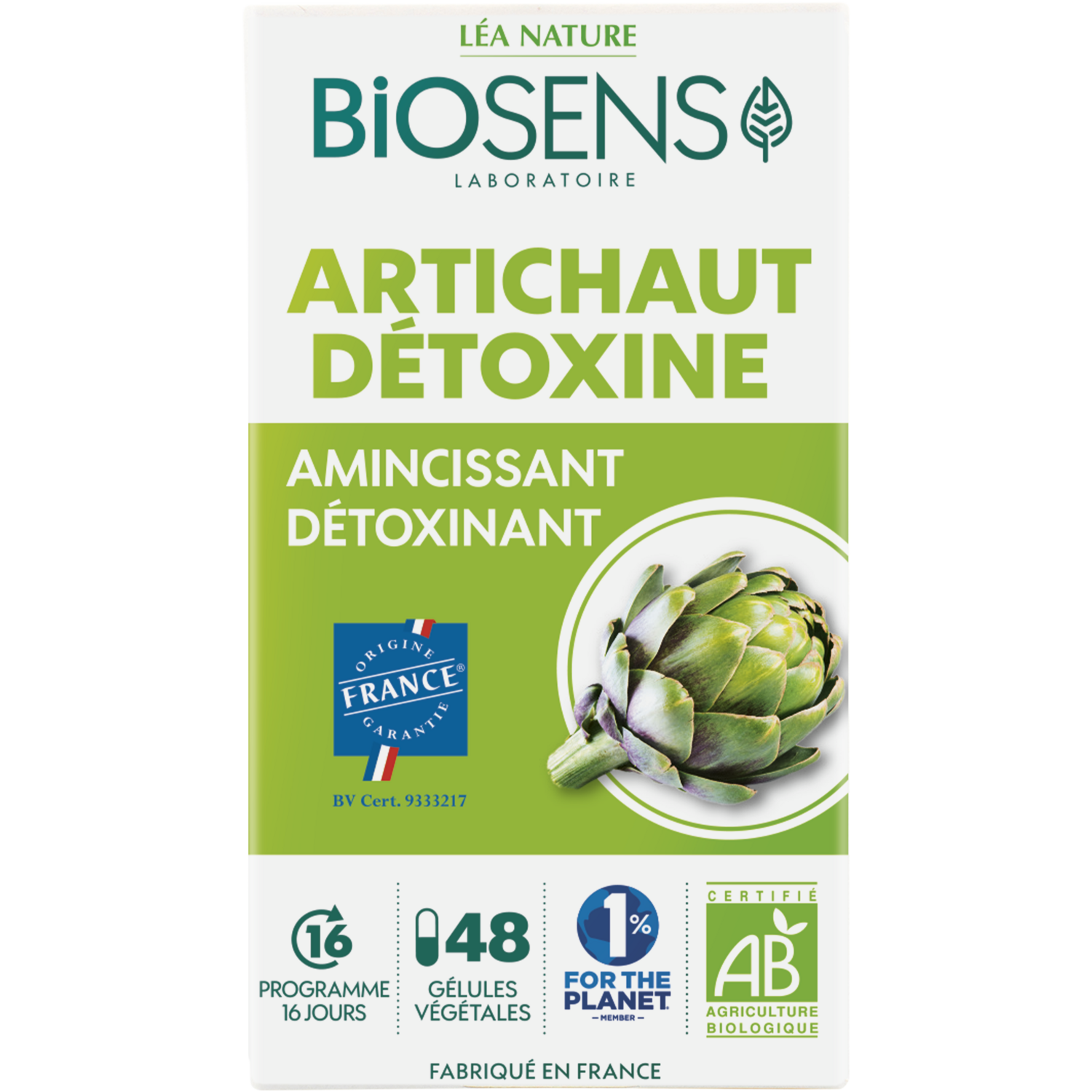Expert des bienfaits de la nature et des plantes, BIOSENS a sélectionné pour vous le meilleur ! Des plantes médicinales et actifs naturels issus de l'agriculture biologique et cultivés en France : Parce que l'engagement BIOSENS c'est aussi le développement de filière agricole BIO 100% Française. L'artichaut aide à détoxifier et aide au maintien du bien-être du foie en participant à l'élimination de la bile. Il participe à la perte de poids. Vegan Fabriqué en France Origine France Garantie Cette gélule hautement dosée est composée uniquement de plante et d'ingrédient d'origine naturelle Sans dioxyde de titane - conformément à la réglementation biologique Pilulier d'origine végétale