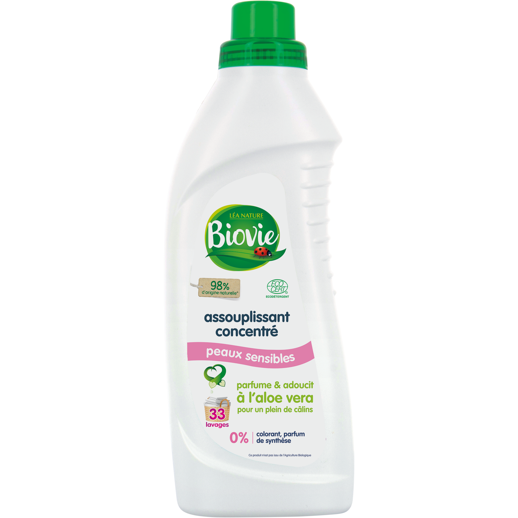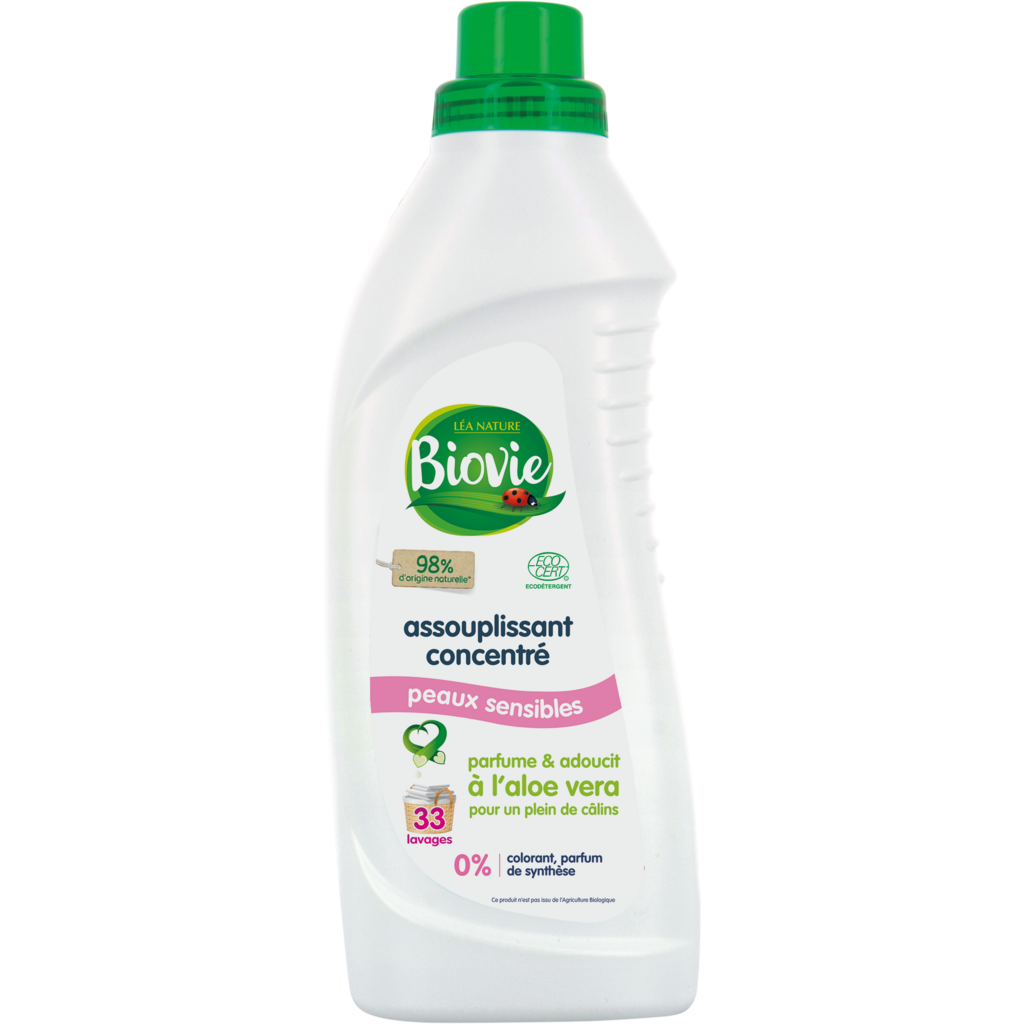 Les éco-conseils Biovie ® : pour respecter l'environnement, suivre les dosages préconisés. Pour plus d'informations, www.biovie.com Conseils d'utilisation : Dosage pour une machine de 4,5kg : 3/4 de bouchon. Dosage pour le lavage à la main : 1/2 bouchon dilué dans la dernière eau de rinçage. 1 bouchon = 40ml. Ne pas verser l'assouplissant directement sur le linge. Ce produit craint le gel - A stocker à l'abri du froid.