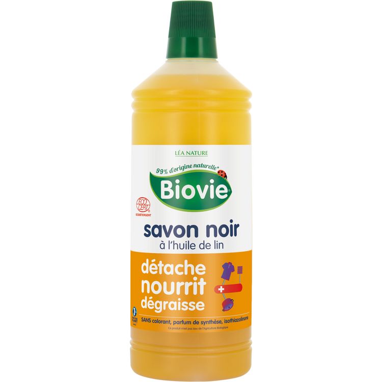 Super multi-usage naturel, le savon noir Biovie® détache, nourrit, dégraisse toutes vos surfaces et textiles. Savon noir liquide, à l'huile de lin