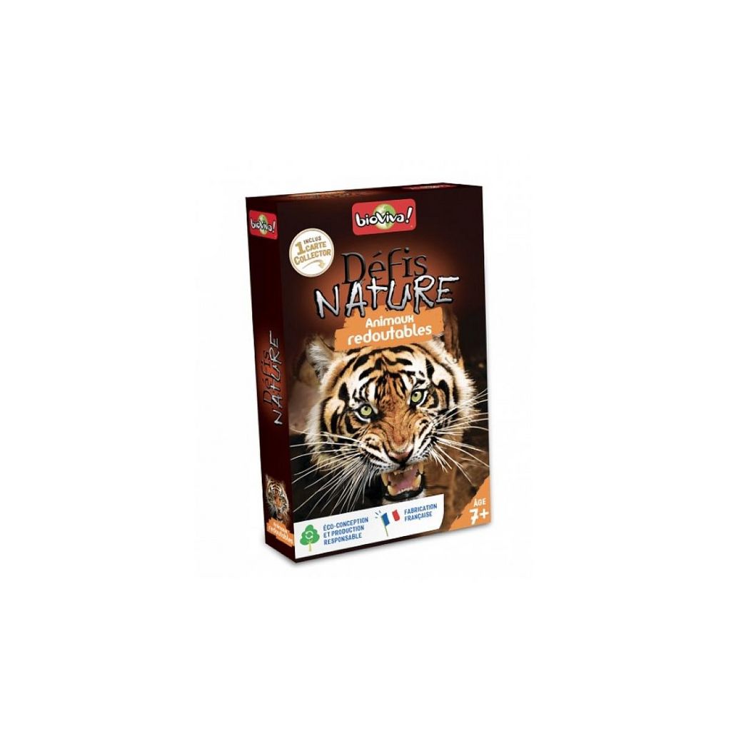 Défis Nature vous emmène à la rencontre des animaux les plus redoutables de notre planète. Découvrez les espèces à préserver, puis pariez sur leurs points forts pour collecter toutes les cartes du jeu et remporter la partie. De 2 à 6 joueurs. Dès 7 ans. Fabriqué en France.