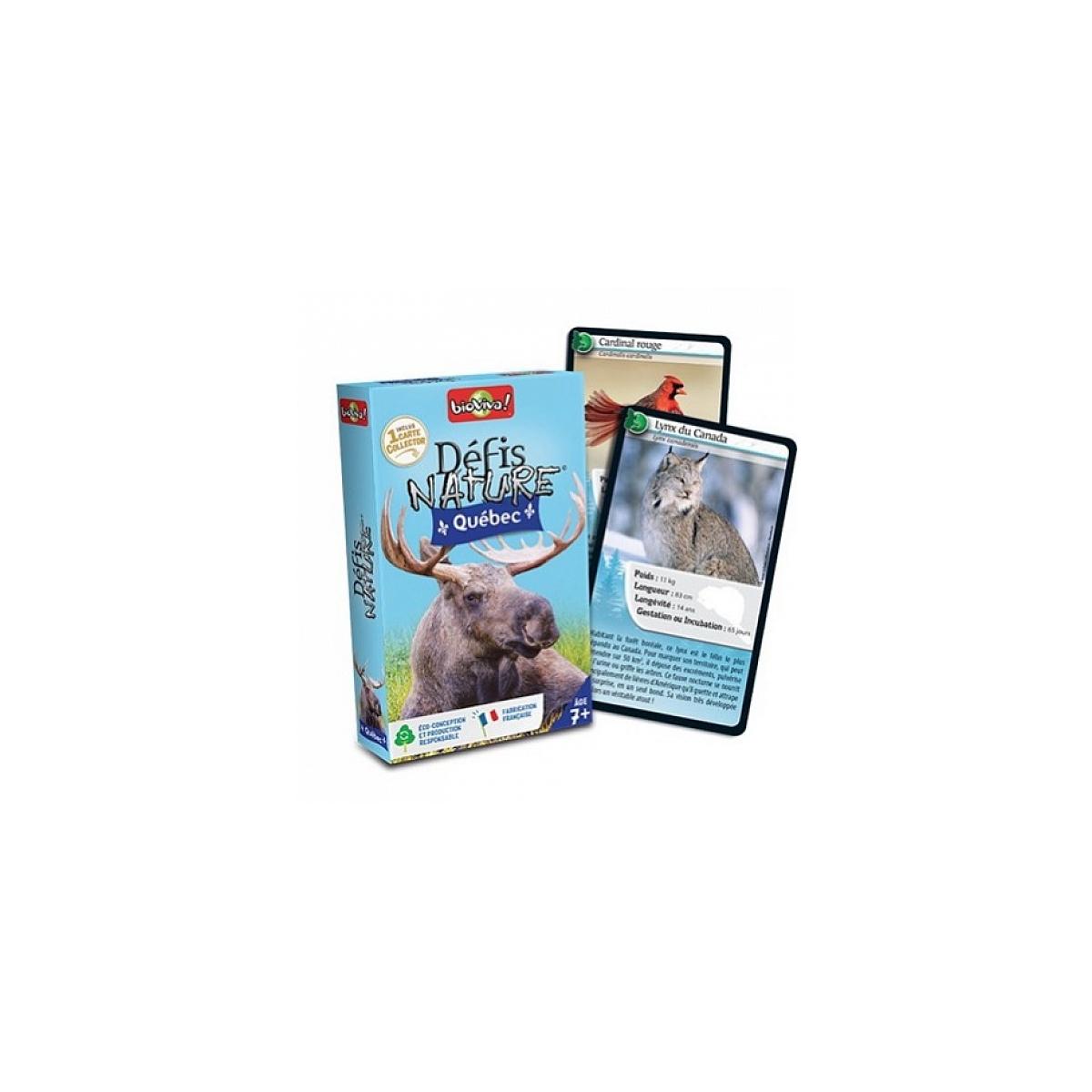 Défis Nature vous emmène à la rencontre des animaux du Québec ! Découvrez les espèces à préserver, puis pariez sur les points forts de vos animaux pour collecter toutes les cartes du jeu et remporter la partie. Alors, prêts à relever le défi ? Inclus : Une carte Collector offerte pour encore plus de fun ! De 2 à 6 joueurs. Dès 7 ans. Fabriqué en France.