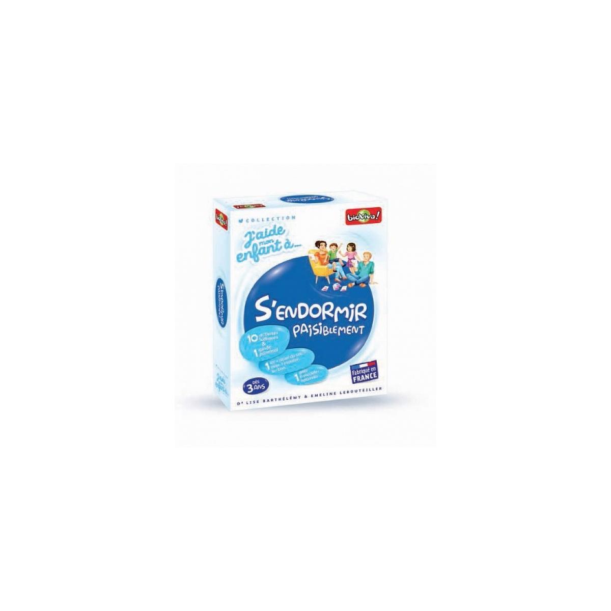 J'aide mon enfant à s'endormir paisiblement de Bioviva est un ensemble de 10 activités qui mettent en place des rituels avant le coucher pour le rassurer. Adapté aux enfants de 3 ans et plus. Dans ce jeu J'aide mon enfant à s'endormir paisiblement de Bioviva, vous trouverez 10 activités simples et i