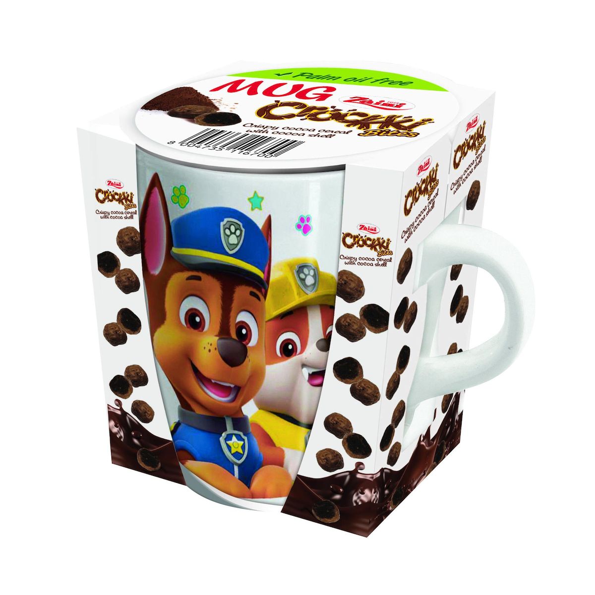 Billes de céréales au chocolat au lait avec tasse en céramique pat patrouille