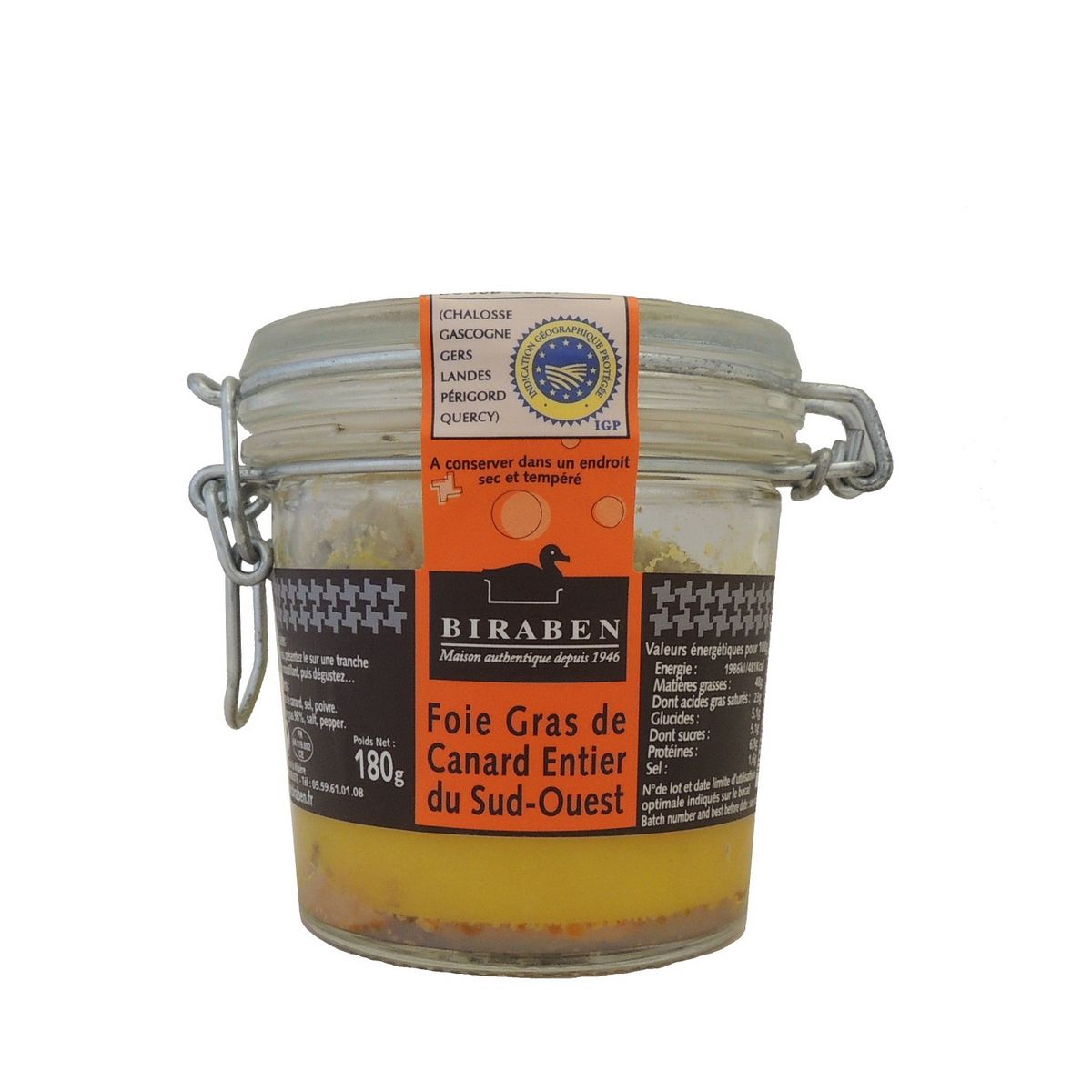 Foie gras de canard Entier IGP Sud-Ouest, bocal 180grs
