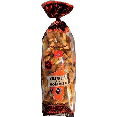 Farine de BLÉ, Sucre, Huile de tournesol, NOISETTES 6%, Sucre inverti, Poudre à Lever (diphosphate disodique, carbonate acide de sodium), Sel, Arôme.