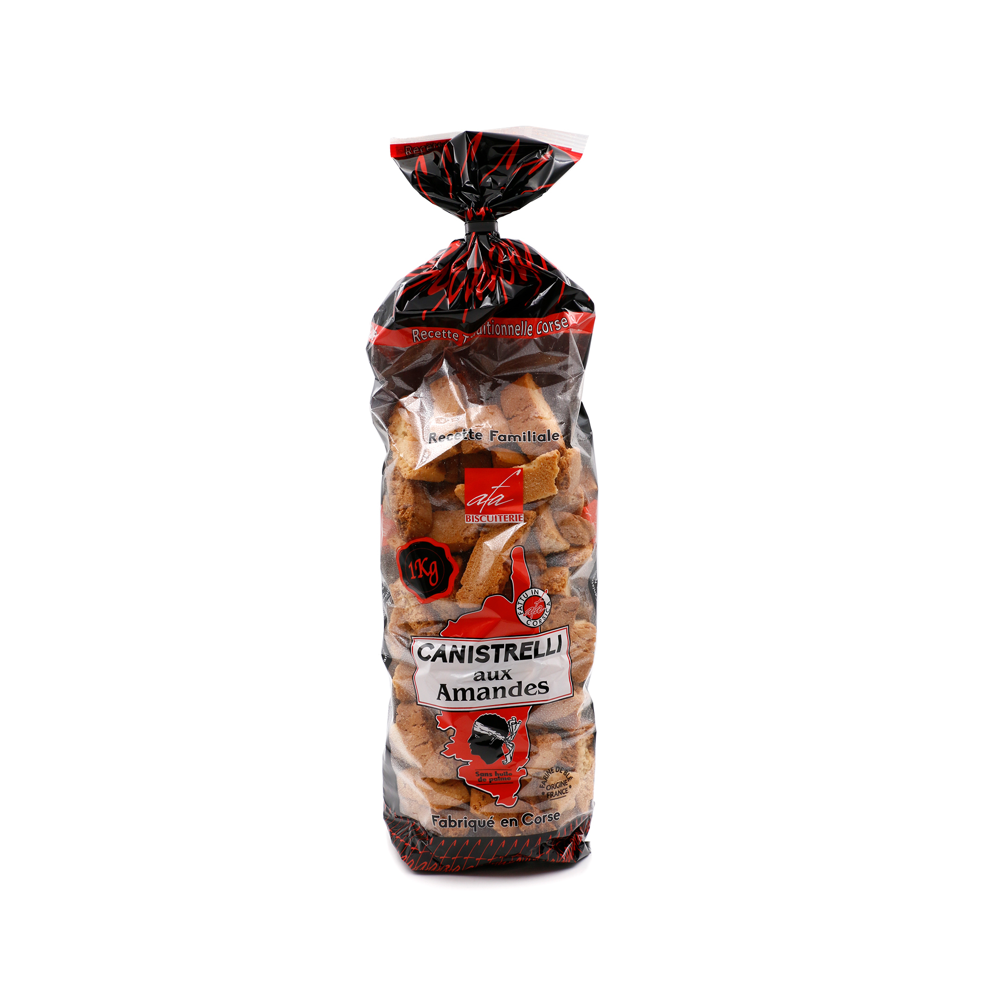 Vous retrouverez dans ce conditionnement familial d'1 kg de délicieux Canistrelli tranchés aux amandes.