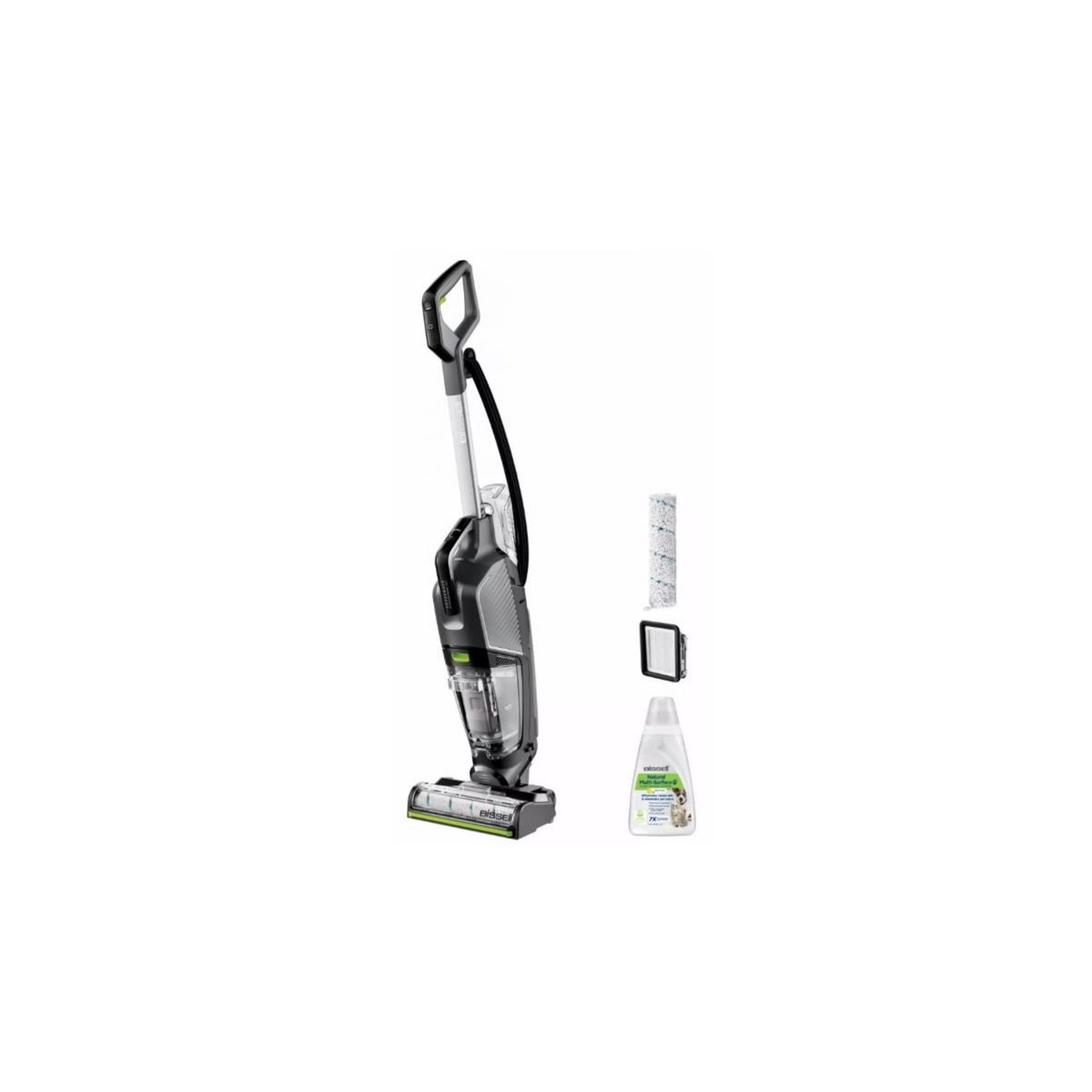 Accessoires supplémentaires : Brosse multi-surfaces antibactérienne FreshStart (2x), Filtre antibactérien FreshStart, Détergent Natural multi-surfaces spécifiques animaux (1L), Solution de nettoyage FreshStart (236ml), Plateau de rangement & porte-accessoires.