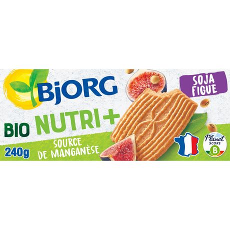 Découvrez les biscuits soja figue nutri + Bjorg et faites le plein d'énergie. Bio, sans huile de palme et sources de fibres, de zinc et de manganèse, ces biscuits riches en céréale seront vos indispensables du petit déjeuner au goûter.