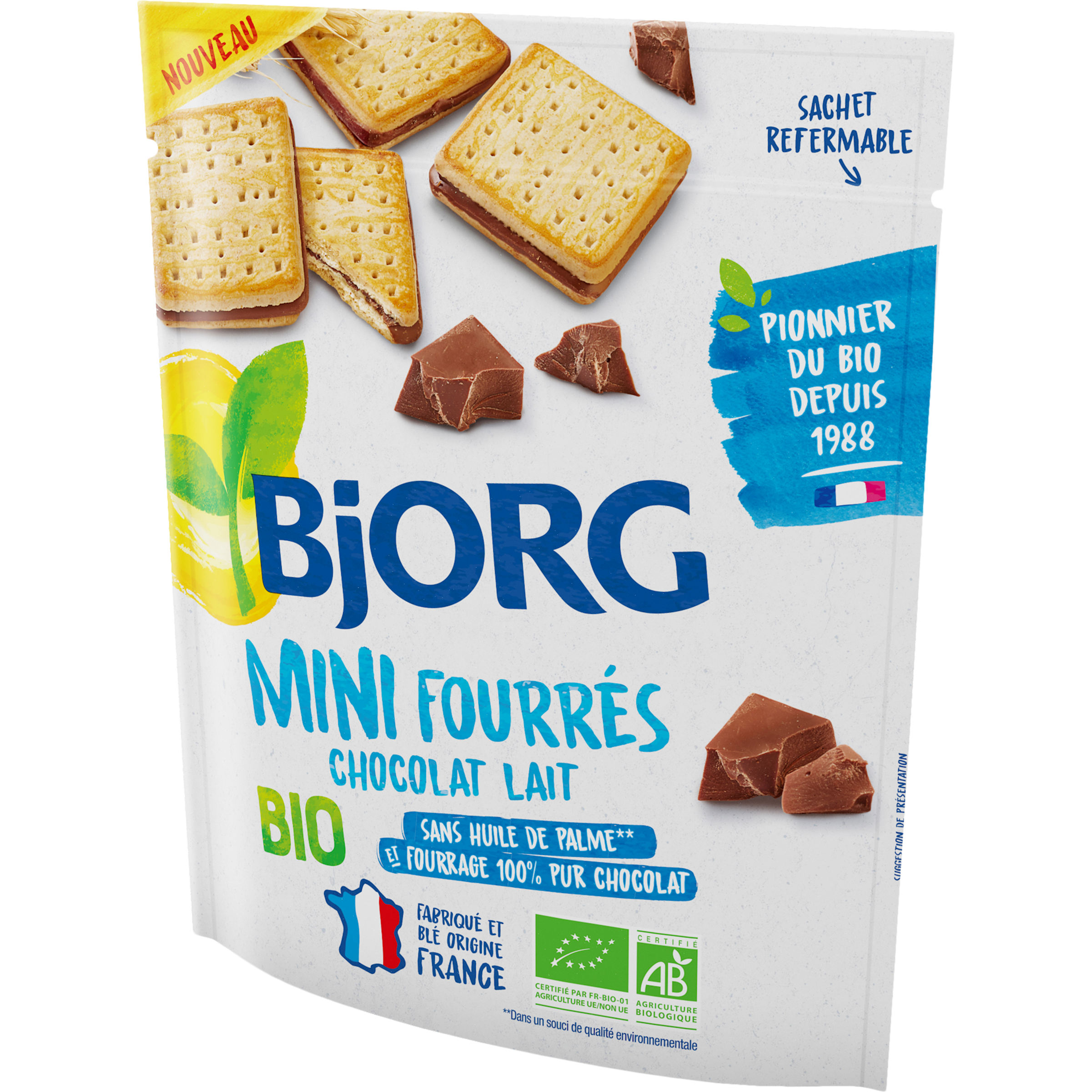 Découvrez les mini fourrés au chocolat au lait Bjorg et laissez-vous tenter par un plaisir gourmand. Bio, sans huile de palme et sources de fibres, ces biscuits fabriqués en France seront vos indispensables du petit déjeuner au goûter.