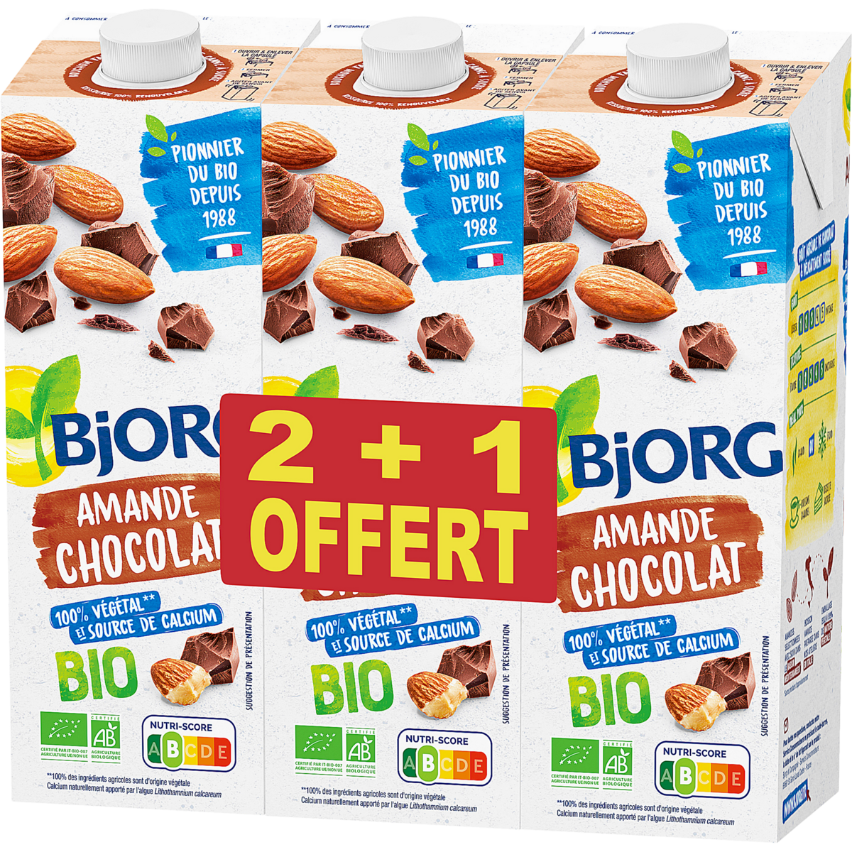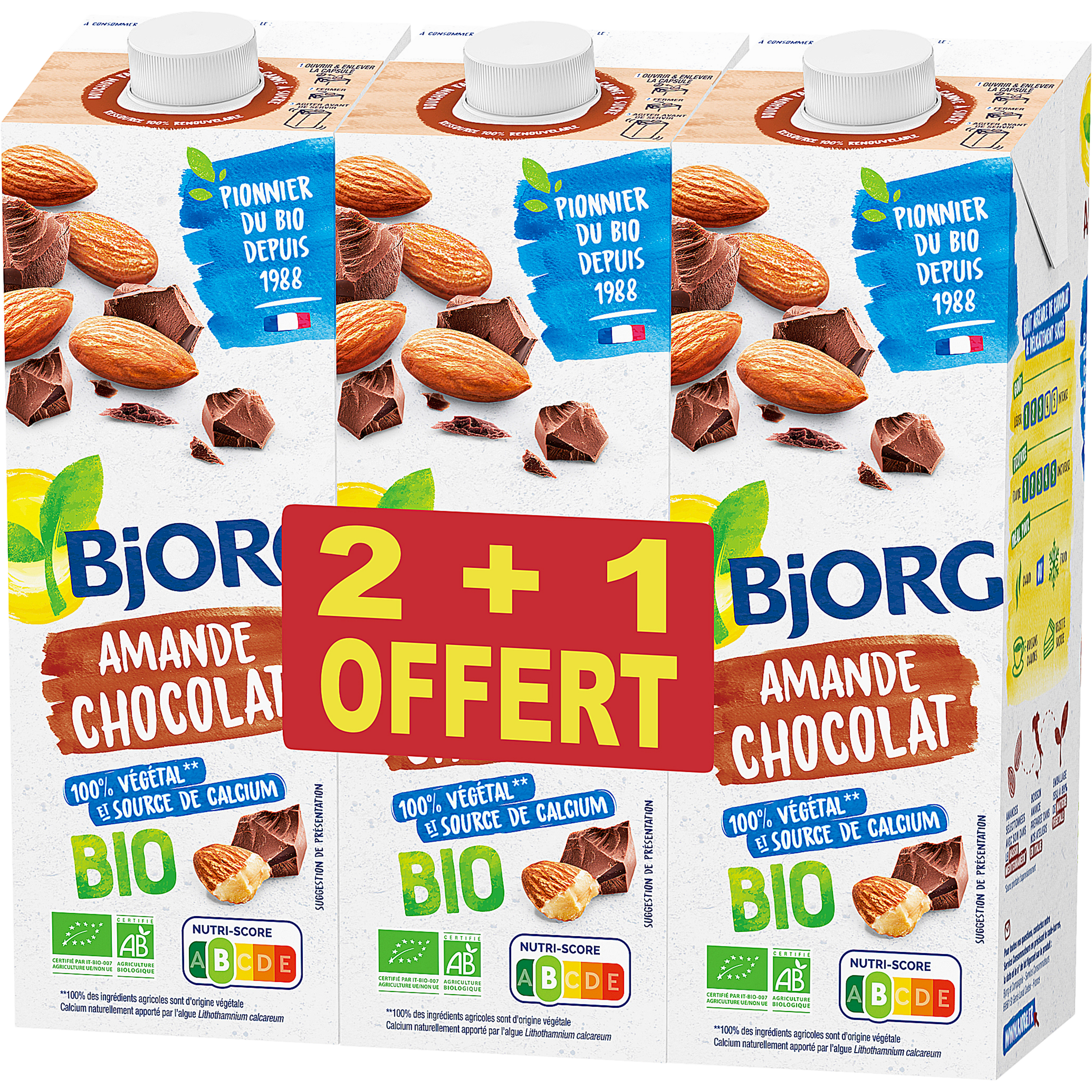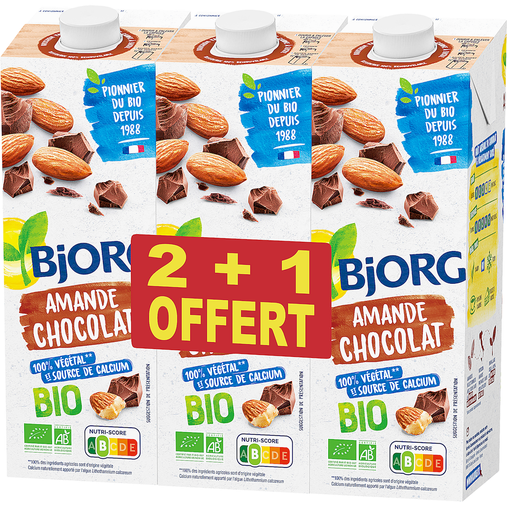 Boisson au lait d'amande bio au chocolat 2+1