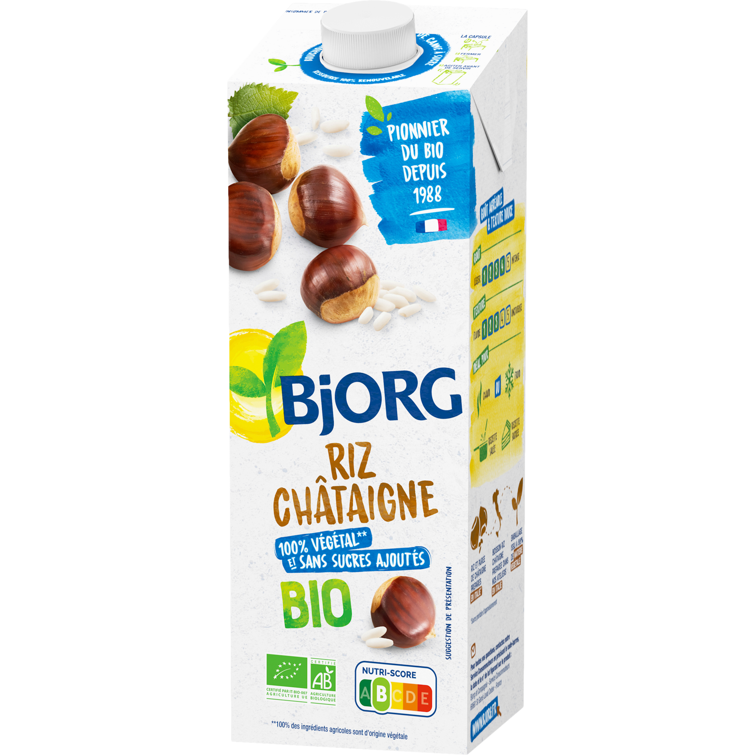 Faites-vous plaisir avec cette boisson pauvre en matières grasses au goût unique de châtaigne. Vous pouvez la boire chaude ou froide, dans votre thé, votre café, ou l'utiliser dans vos recettes sucrées Boisson biologique à base de châtaigne, de riz et d'algue Lithothamnium calcareum source de calcium, stérilisée UHT