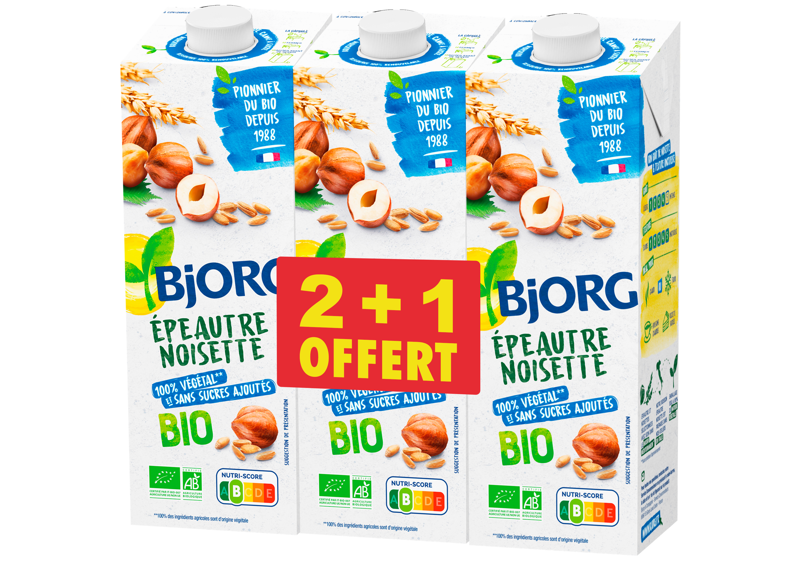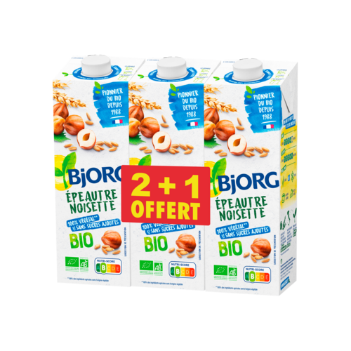 Boisson biologique à base d'épeautre, de riz, de noisette et d'avoine, stérilisée UHT.