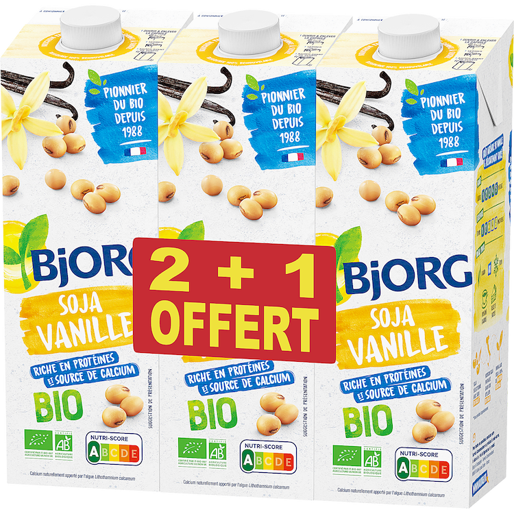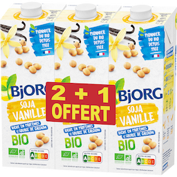 Découvrez la boisson végétale soja vanille Bjorg et faites place au végétal dans votre quotidien. Bio, gourmande, riche en protéines, c'est la boisson idéale du petit déjeuner au goûter à intégrer dans toutes vos recettes préférées.