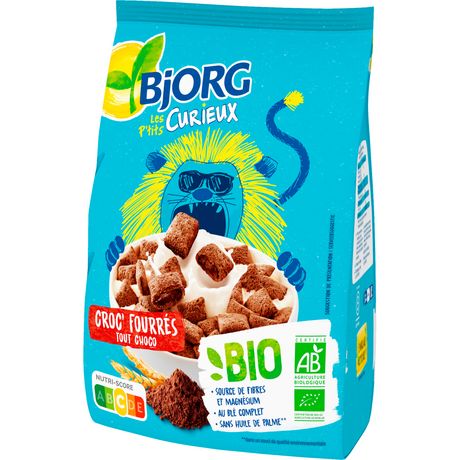 Découvrez les croc' fourrés Bjorg et régalez vos enfants avec un petit déjeuner gourmand. Bio, sources de fibres et à base de blé complet, ces céréales à base de cacao et de noisettes s'intègrent parfaitement dans le cadre d'un petit déjeuner équilibré.