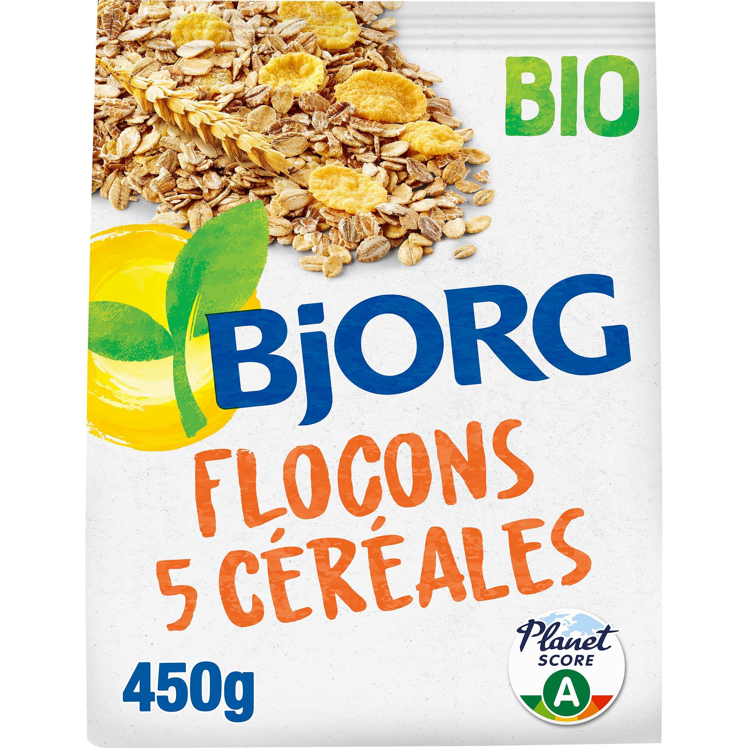Découvrez le flocon 5 céréales Bjorg, et faites le plein d'énergie au petit déjeuner. Bio, riche en céréales complètes et en fibres, sans sucre ajoutés et sans huile de palme, il vous séduira avec sa texture croustillante pour un petit déjeuner sain ou pour vos recettes.