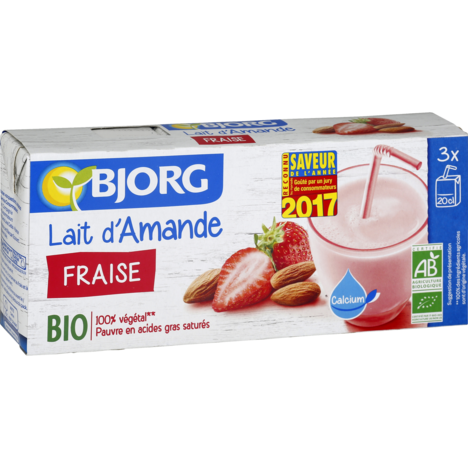 Lait d'amande fraise bio en briquettes