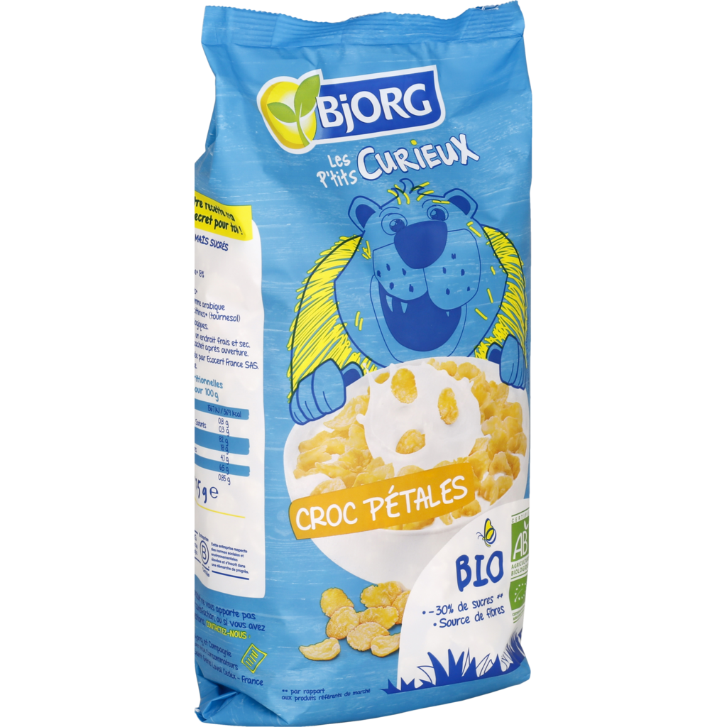 Les p'tits curieux céréales bio croc pétales avec moins de sucre