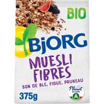 Découvrez le muesli fibres Bjorg et faites le plein d'énergie. Bio, sans sucres ajoutés (contient des sucres naturellement présents), riche en fibres et à base de céréales complètes, ce muesli composé de fruits (figues et pruneaux) s'intègre parfaitement dans le cadre d'un petit déjeuner équilibré.