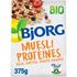 Découvrez le muesli protéines Bjorg et faites le plein d'énergie. Bio, sans sucres ajoutés (contient des sucres naturellement présents), riche en fibres et en protéines et composé de céréales complètes, ce muesli à base de soja et de fruits (dattes et fruits rouges) s'intègre parfaitement dans le cadre d'un petit déjeuner équilibré.