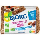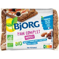 Découvrez le pain complet muesli Bjorg et faites le plein d'énergie. Bio, riche en fibres et source de magnésium et de phosphore, ce pain préparé à base de farine complète de seigle, de raisins, d'amandes et de noisettes est un véritable allié pour concilier bienfaits nutritionnels et plaisir.