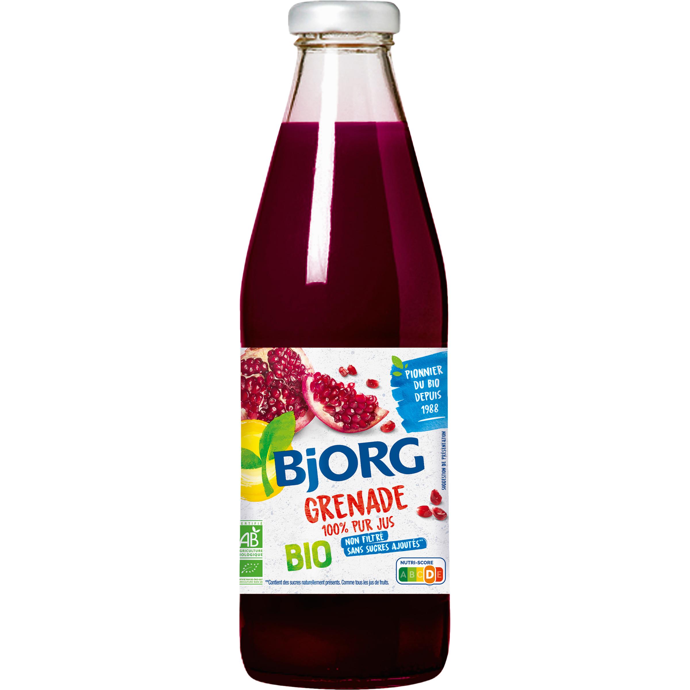 Découvrez le délicieux jus de grenade Bjorg. Bio et sans sucres ajoutés, ce jus de fruit, qui se consomme frais tout au long de la journée, contient des sucres naturellement présents comme tous les jus de fruits. C'est un véritable allié au quotidien !