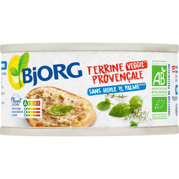 Spécialité végétale à tartiner aux herbes de Provence. Nos terrines végétales, biologiques* et source de fibres, représentent une alternative végétale aux pâtés à base de porc et de volaille. Tartinées sur du pain frais ou sur des toasts grillés, elles sont délicieuses et se savourent en apéritif comme en entrée. Elles ont l'avantage d'être conditionnées en petites portions facilement transportables et refermables. Quatre variétés vous sont proposées : Forestière, Provençale, Aubergine, Légumes du soleil et Olives.