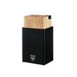 Le design irrésistible du bloc couteaux PORVOO réside le revêtement noir mat au toucher velours qui borde un cube en bois massif. Dans un style ultra moderne, il plaira aux chasseurs de tendances et aux adeptes de qualité durable. Le bois d'hévéa utilisé pour la fabrication de ce bloc est non seulem