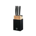 Le design irrésistible du bloc couteaux PORVOO réside le revêtement noir mat au toucher velours qui borde un cube en bois massif. Dans un style ultra moderne, il plaira aux chasseurs de tendances et aux adeptes de qualité durable. Le bois d'hévéa utilisé pour la fabrication de ce bloc est non seulement résistant, mais aussi respectueux de l'environnement, tandis que le revêtement en caoutchouc assure un support stable et antidérapant. Ce bloc couteaux est bien plus qu'un simple support de rangement, il maintient vos couteaux en sécurité et permet un affûtage régulier grâce à son aiguiseur intégré.