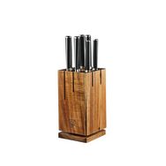 Le bloc couteau SKAGEN peut accueillir jusqu'à 6 couteaux de cuisine. Grâce à un roulement à billes, il présente un châssis rotatif à 360° qui permet d'accéder facilement à chaque couteau d'un simple geste. Sa forme cubique en bois massif se présente comme une œuvre d'art avec des fentes qui rappellent un labyrinthe, créant ainsi un visuel intrigant et original. Fabriqué à partir de bois d'acacia résistant à l'humidité, aux moisissures et aux agressions extérieures, le bloc couteau SKAGEN est un choix durable et respectueux de l'environnement.
