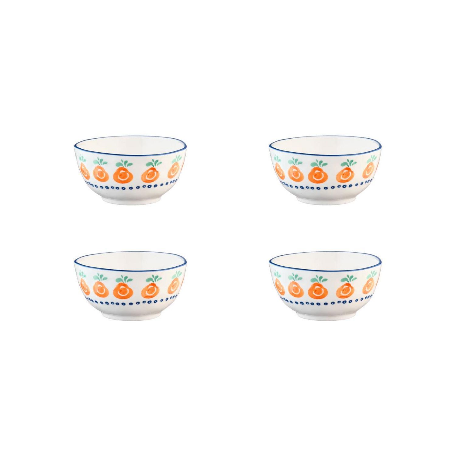Ce petit bol à la forme évasé accompagne chaque repas et propose de multiples utilisations en passant par l'apéritif, l'entrée et le dessert.Fabriqué en porcelaine blanche de haute qualité, chaque pièce est peinte à la main avec des motifs de feuillages, de fruits et d'agrumes par des artisans talen