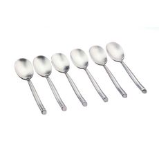 Ce coffret de 6 petites cuillères aux courbes asymétriques viendra compléter la ménagère du même nom. La petite cuillère est souvent plus utilisée, c'est pourquoi elle est aussi proposée séparément.