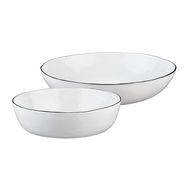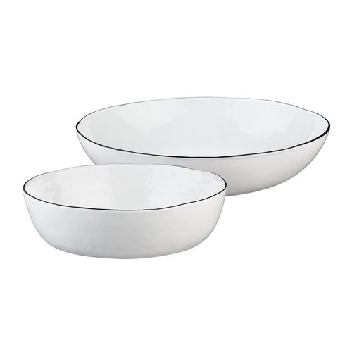 Cet ensemble de 2 plats de service de forme différente se présente comme une corbeille à fruits et un plat de présentation. Dans un style élégant et intemporel, ces éléments fonctionnels et design trouvent facilement leur place dans toutes les pièces de vie de la maison. Idéale pour des préparations conviviales chaudes et froides, on y met évidemment des fruits ou légumes de saison sur un buffet ou une table basse pour ajouter une touche fraîche et moderne.