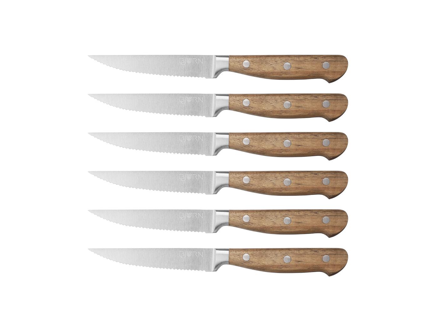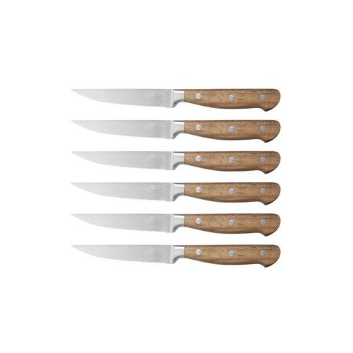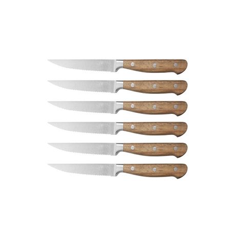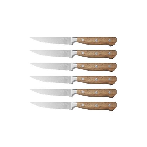 Les couteaux de table JAKOB vous emmènent dans une expérience culinaire hors du commun et à transformer votre repas en festin ! La fine lame d'une longueur parfaite de 11 cm permet une découpe nette et sans effort sur tout type d'aliment et notamment les viandes rouges ou blanches. Le manche riveté dans la tradition est conçu avec du bois d'acacia responsable et permet aux couteaux d'être en harmonie avec tout type de table et de cuisine, de la plus altique à la plus moderne. Afin d'optimiser leur durée de vie, il convient de les nettoyer à la main avec de l'eau savonneuse et une éponge, puis de les essuyer avec un chiffon doux.
