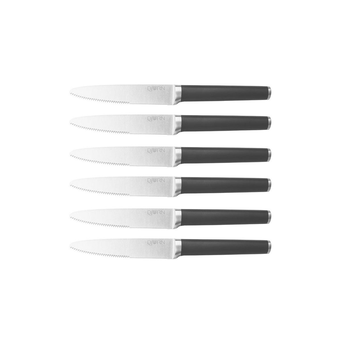 En plus d'être solides grâce à leur composition qui allie fer et carbone avec une finition satinée, ces couteaux attirent immédiatement l'attention par leur allure et la pointe légèrement arrondie. La couleur inox mat de la lame apporte une touche moderne, tandis que le manche noir mat offre une prise en main confortable et sécurisée. Les couteaux JONA sont adaptés pour un lavage au lave-vaisselle.