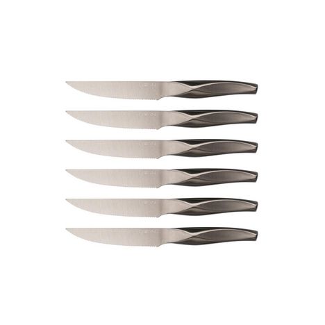 Les couteaux de table LARUS nous emmènent dans une expérience culinaire futuriste. Les six couteaux d'une longueur de lame de 13 cm sont parfaitement adaptés pour savourer vos plats préférés, qu'il s'agisse de viandes, tartes ou plats cuisinés. Ce qui distingue véritablement ces couteaux, c'est le design original et la couleur éclatante aux mille reflets associés à une performance de coupe remarquable. Fabriqués en acier inoxydable de haute qualité et garantis pour durer dans le temps, les couteaux sont adaptés à un lavage au lave-vaisselle. La teinte présente un effet brossé qui apporte une esthétique moderne et fascinante, les faisant ressortir dans n'importe quelle situation. Les lames parfaites et tranchantes associées aux reliefs géométriques du manche permettent une prise en main ergonomique et un confort absolu lors de la découpe, faisant de chaque instant de dégustation un véritable plaisir.