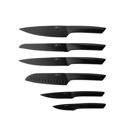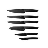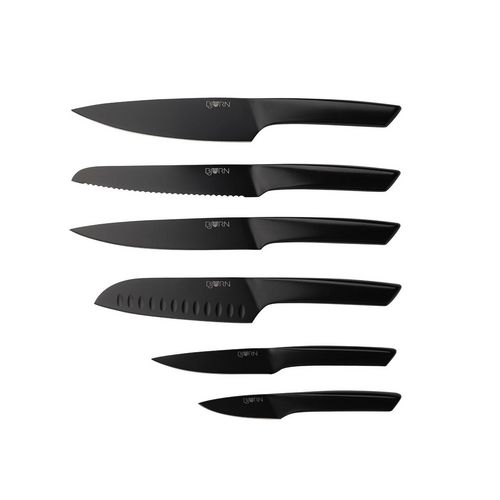 Les couteaux JENSEN sont l'expression d'un design épuré et minimaliste. Connus depuis plusieurs années dans le monde de la découpe, ils ont reçu le Reddot Design Award, véritable reconnaissance en matière de design et de performance. Dans un style ultra contemporain, ces couteaux s'affichent fièrement dans la cuisine ou au centre d'un plan de travail pour souligner votre goût pour la décoration d'intérieur. La qualité de coupe qu'apporte la lame noire tranchante en acier inoxydable avec une finition satinée est remarquable et à l'épreuve du temps, tandis que les matériaux utilisés permettent entretien facile au lave-vaisselle. Le set se compose d'un couteau d'office pour couper et peler, d'un couteau universel très polyvalent, d'un couteau santoku pour les herbes aromatiques, les fruits et les légumes (les aliments ne restent pas collés à la lame grâce aux alvéoles), d'un couteau à trancher pour couper les viandes sans les déchirer, d'un couteau à pain permettant de découper des tranches nettes sans en abîmer la croûte et d'un couteau du chef pour les fruits, légumes, viandes ou poissons... La légèreté dans toute sa splendeur s'exprime dans la prise en main ergonomique comme dans la découpe lors de l'utilisation.