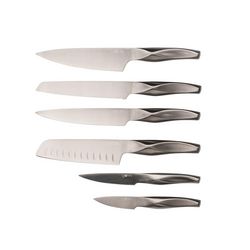 Forgés en acier inoxydable, ces couteaux sont si robustes que vous pouvez compter sur leur durabilité pour toutes vos aventures culinaires. La teinte présente un effet brossé qui apporte une esthétique moderne et fascinante, les faisant ressortir dans n'importe quelle situation. Adapté pour un lavage au lave-vaisselle, le set se compose d'un couteau d'office pour couper et peler, d'un couteau universel très polyvalent, d'un couteau santoku pour les herbes aromatiques, les fruits et les légumes (les aliments ne restent pas collés à la lame grâce aux alvéoles), d'un couteau à trancher pour couper les viandes sans les déchirer, d'un couteau à pain permettant de découper des tranches nettes sans en abîmer la croûte et d'un couteau du chef pour les fruits, légumes, viandes ou poissons...