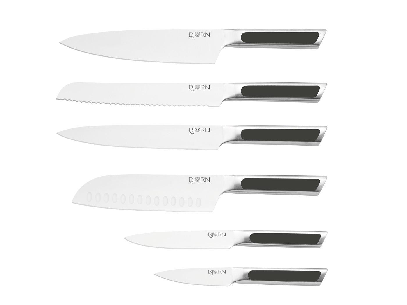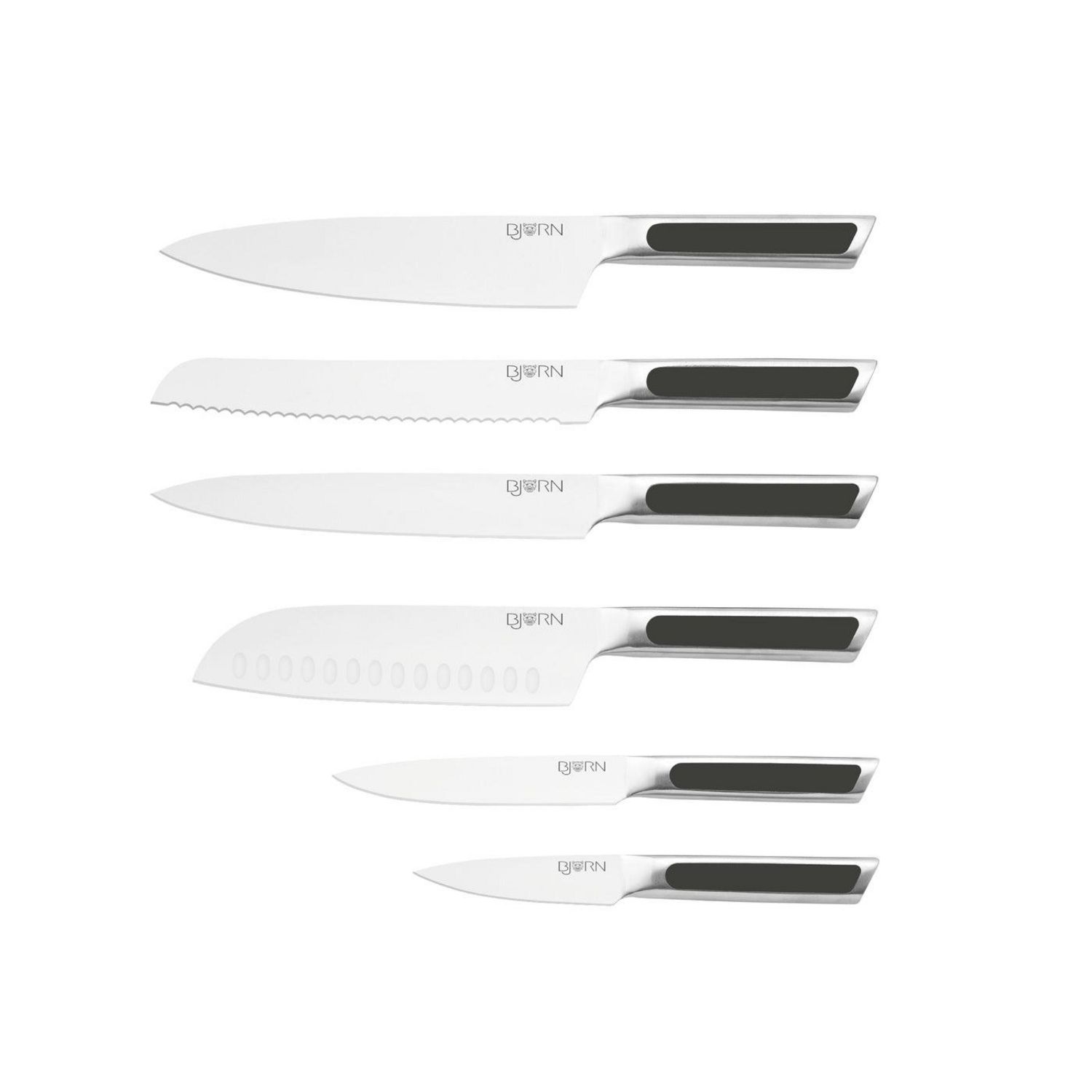 Les couteaux LOKI allient fonctionnalité, durabilité et design et ont été spécialement conçus pour répondre aux besoins de tous. La combinaison des couleurs noire et métal confère à ces couteaux un aspect très chic et moderne tandis que la finition satinée des lames exprime toute la qualité d'une découpe lisse et précise.