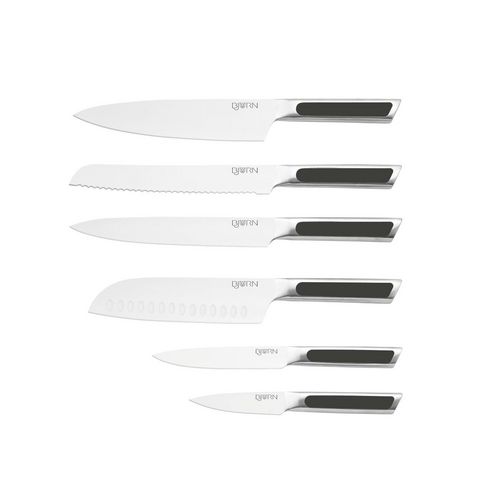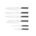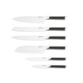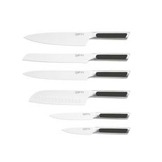 Particulièrement aiguisées, ces lames offrent une performance de coupe optimale pour émincer, trancher ou hacher. Ils sont fabriqués en acier inoxydable de haute qualité pour garantir une longue durée de vie et passer au lave-vaisselle. Les poignées des couteaux quant à elles sont à la fois résistantes et antidérapantes, permettant d'accomplir toutes vos taches culinaires avec succès. Le set rassemble les indispensables de la découpe pour réussir toutes vos préparations : le couteau d'office pour couper et peler, le couteau universel est très polyvalent, le couteau santoku pour les herbes aromatiques, les fruits et les légumes (les aliments ne restent pas collés à la lame grâce aux alvéoles), le couteau à trancher pour couper les viandes sans les déchirer, le couteau à pain permet de découper des tranches nettes sans en abîmer la croûte et le couteau du chef pour les fruits, légumes, viandes ou poissons...