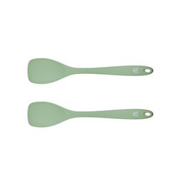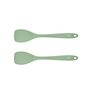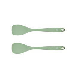 Fabriquées en silicone et PBT (polybutylène téréphtalate), soit une résine technique et alimentaire thermo-résistante, ces cuillères sont sans mélamine ni polyamide, offrant une alternative sûre et résistante à la chaleur. Leur finition vert pâle, signature de la marque, s'intègre harmonieusement à une table contemporaine ou à une cuisine moderne. Solides, légères et douces au toucher, elles conviennent à un usage quotidien. Compatibles lave-vaisselle, elles s'entretiennent facilement tout en conservant leur forme et leur éclat. Un duo simple, durable et esthétique, pensé pour sublimer le geste du service.