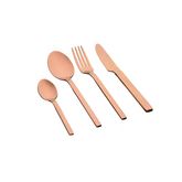 Fabriqué en acier inoxydable pour résister à une utilisation quotidienne, ces couverts sont durables et d'un entretien facile au lave-vaisselle. Dans sa version de couleur cuivrée avec une finition brillante , ce modèle convient étonnement bien à tous les styles et ne vous laissera pas indifférents.