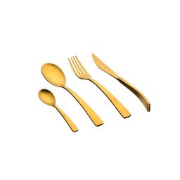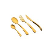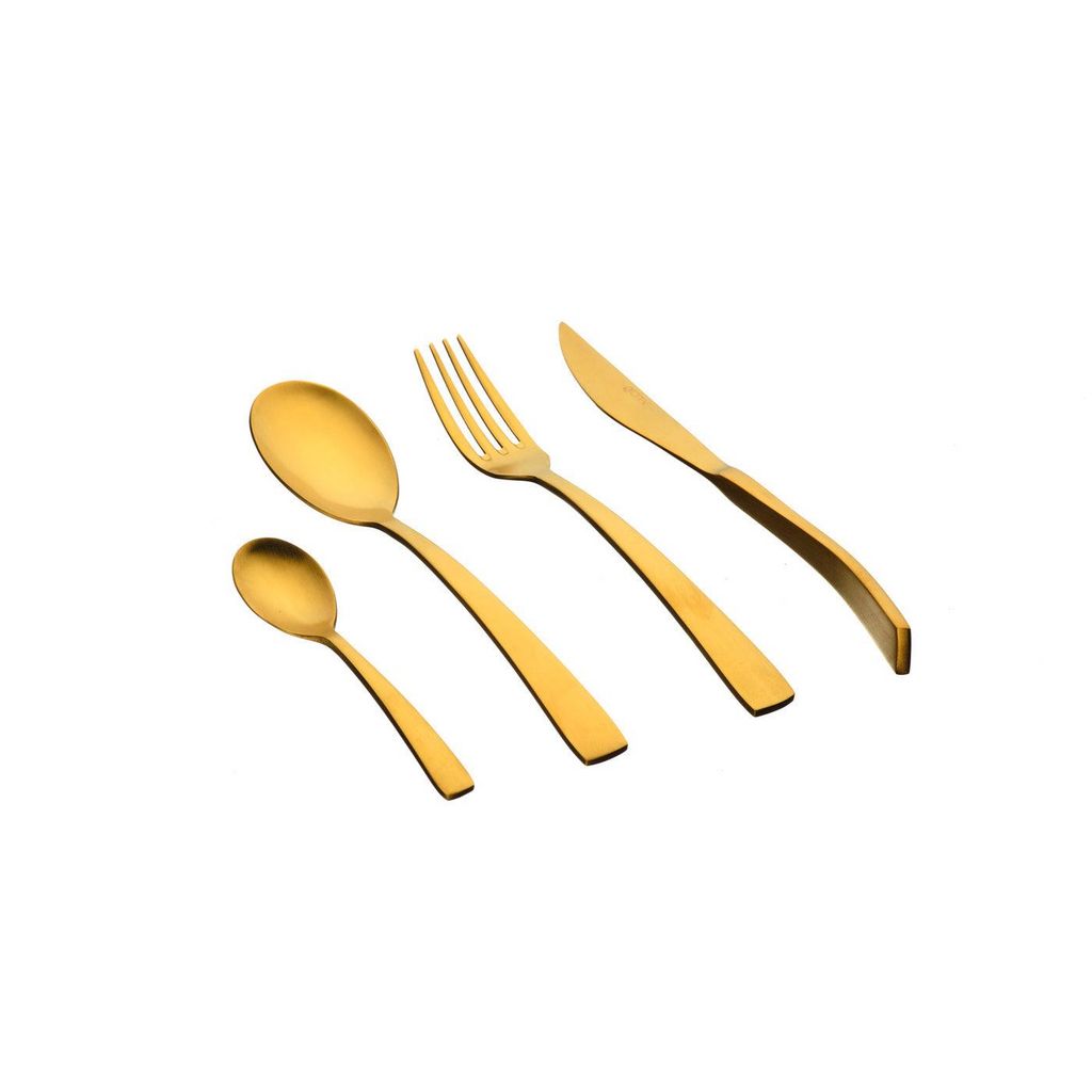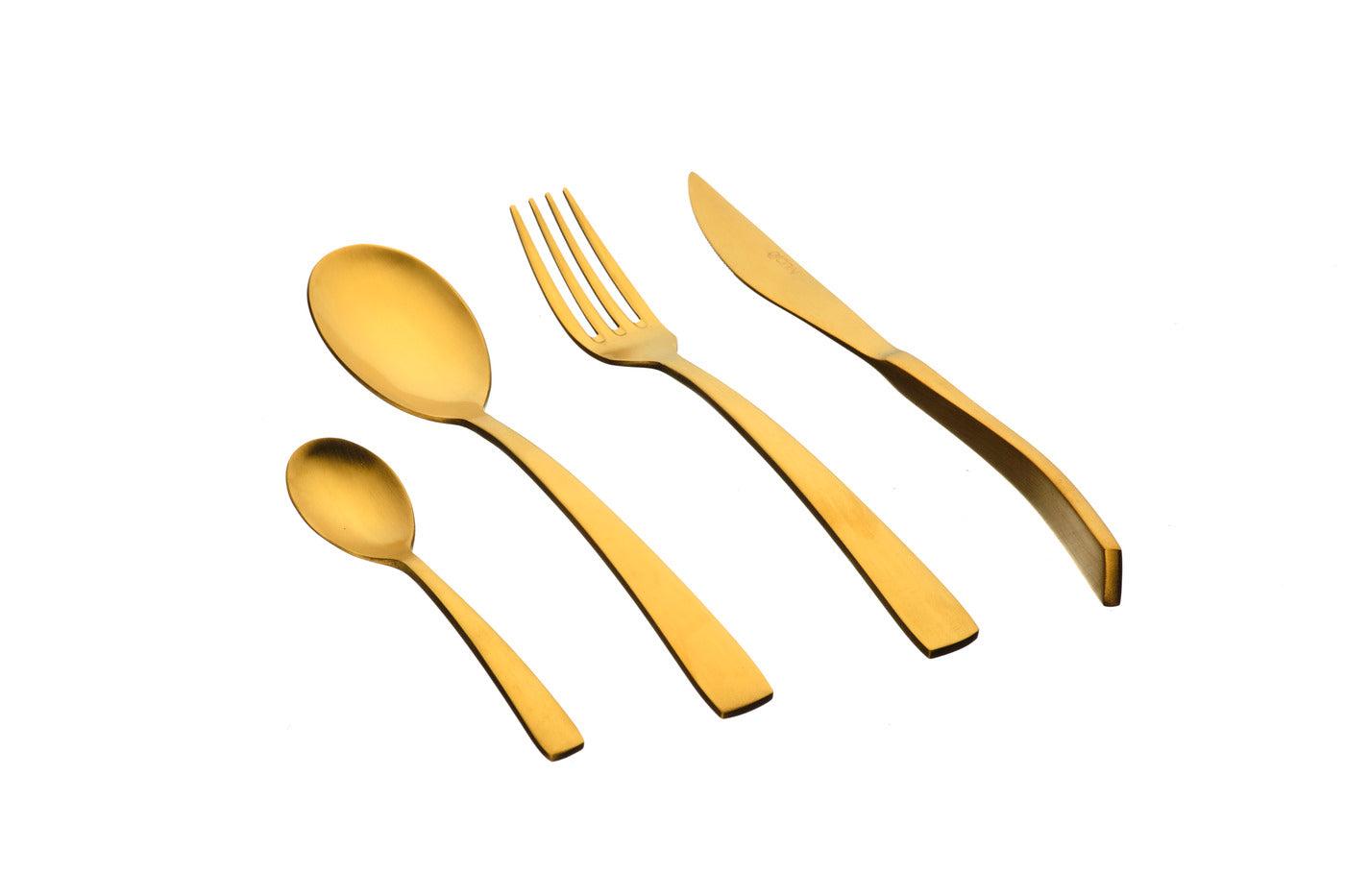 Fabriqué en acier inoxydable pour résister à une utilisation quotidienne, ces couverts sont durables et d'un entretien facile au lave-vaisselle. Dans sa version de couleur dorée avec une finition mate, ce modèle à l'effet miroir chic et éclatant illuminera votre table et étonnera vos convives.