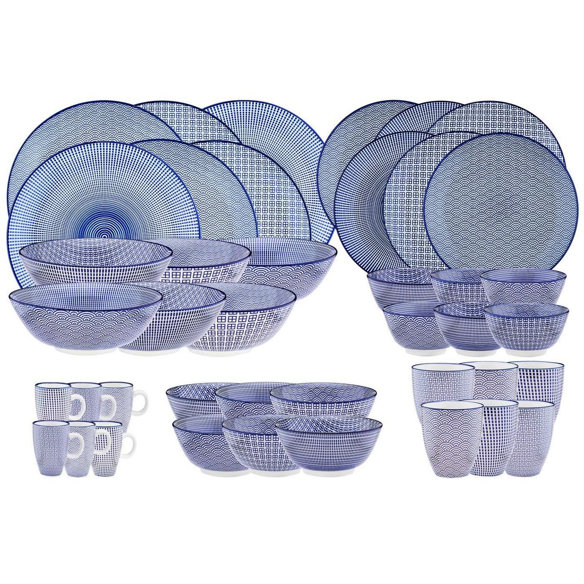 La collection PATTERN dans sa déclinaison Dark Blue sollicite votre créativité et permet un mix and match facile des couleurs lors du dressage de la talbe. Les motifs et les couleurs tournent d'une pièce à l'autre et nous invitent à l'échange et au partage.