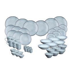 Le service Complet regroupe toutes les pièces de vaisselle de la collection pour une utilisation au quotidien. L'assortiment se compose de 18 assiettes déclinées dans trois tailles différentes, 6 assiettes creuses, 18 bols déclinés dans trois tailles différentes, 6 mugs et 6 tasses pour permettre un dressage de table complet pour 6 personnes.