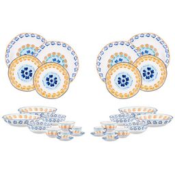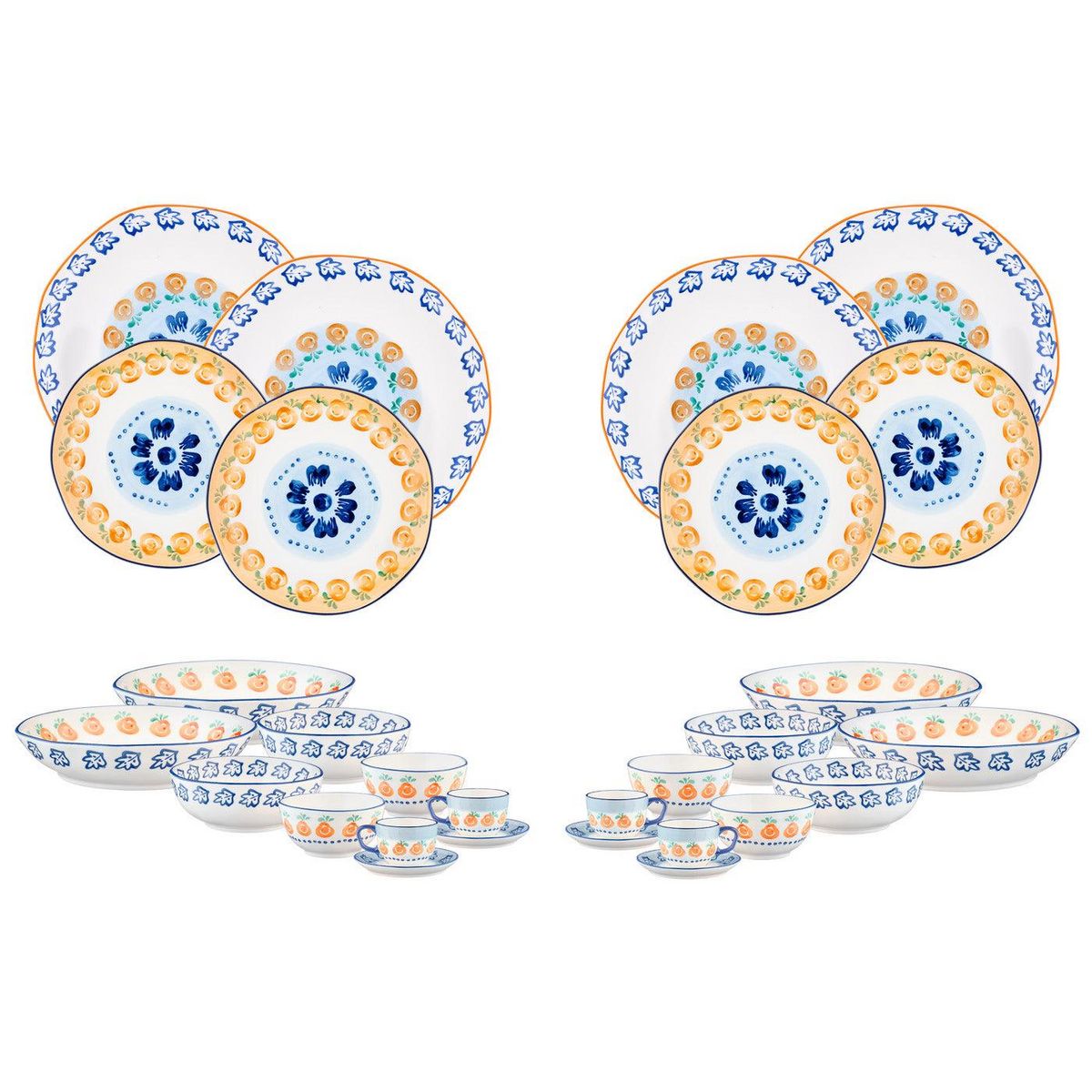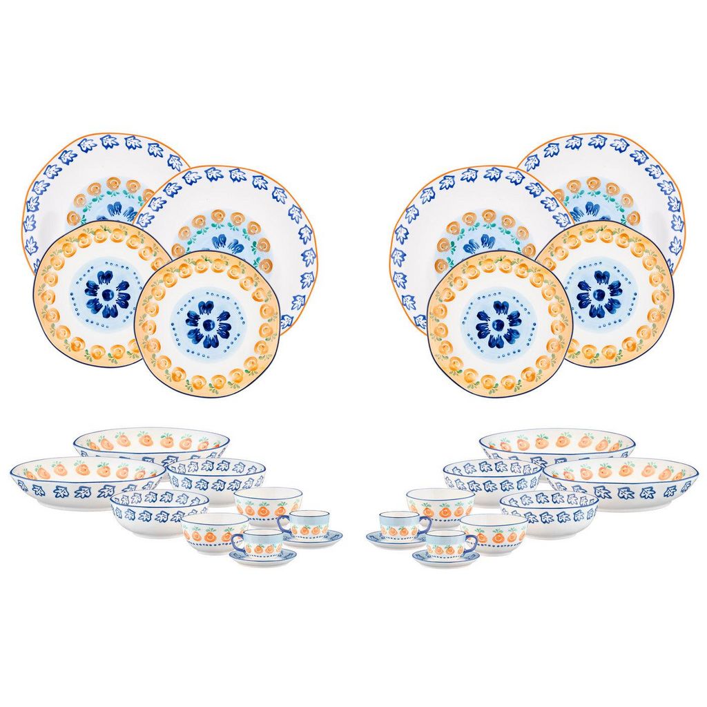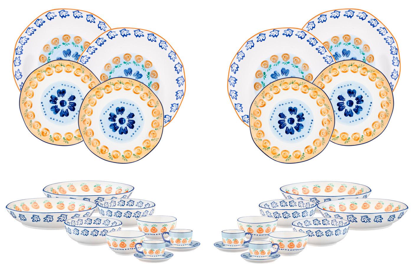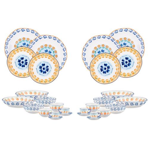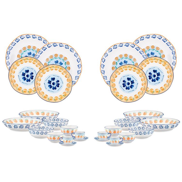 Le service Complet regroupe l'ensemble des 28 pièces de vaisselle de la collection pour une utilisation au quotidien. L'assortiment se compose de 4 grandes assiettes, 4 petites assiettes, 4 assiettes creuses, 4 tasses et soucoupes, 4 grands bols et 4 petits bols pour permettre un dressage de table complet pour 4 personnes.