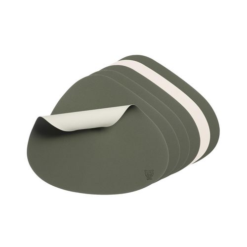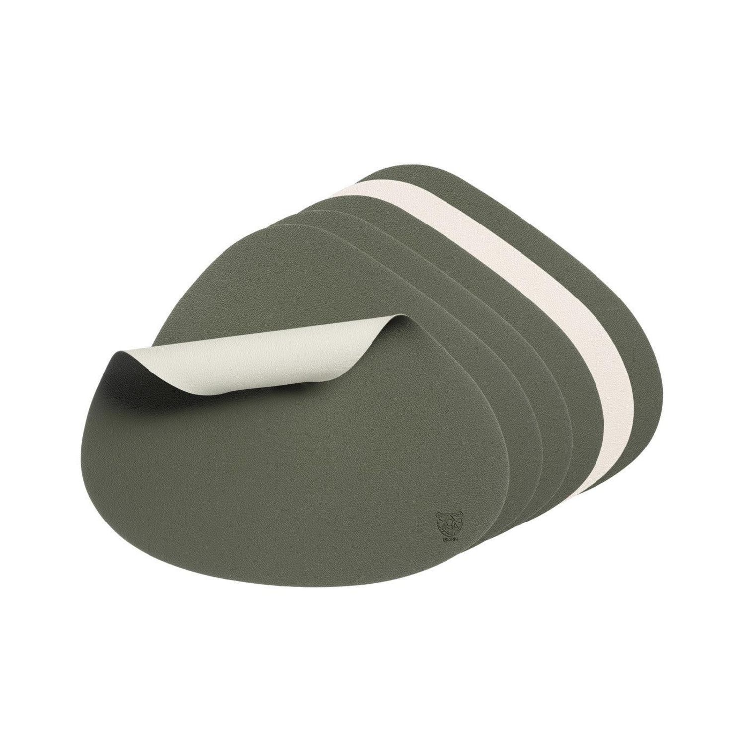Set de table curve réversible - 6 pièces - Cuir recyclé blanc crème et vert de gris