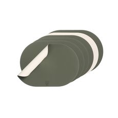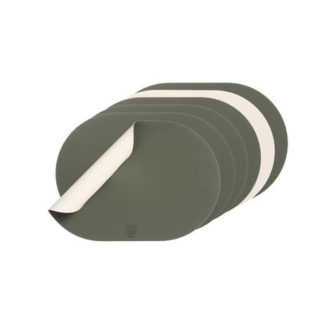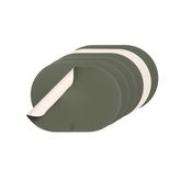 Set de table ovale réversible - 6 pièces - Cuir recyclé blanc crème et vert de gris