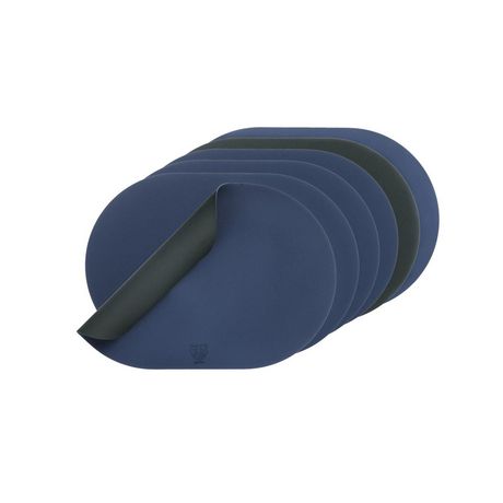Set de table ovale réversible - 6 pièces - Cuir recyclé bleu nuit et gris anthracite