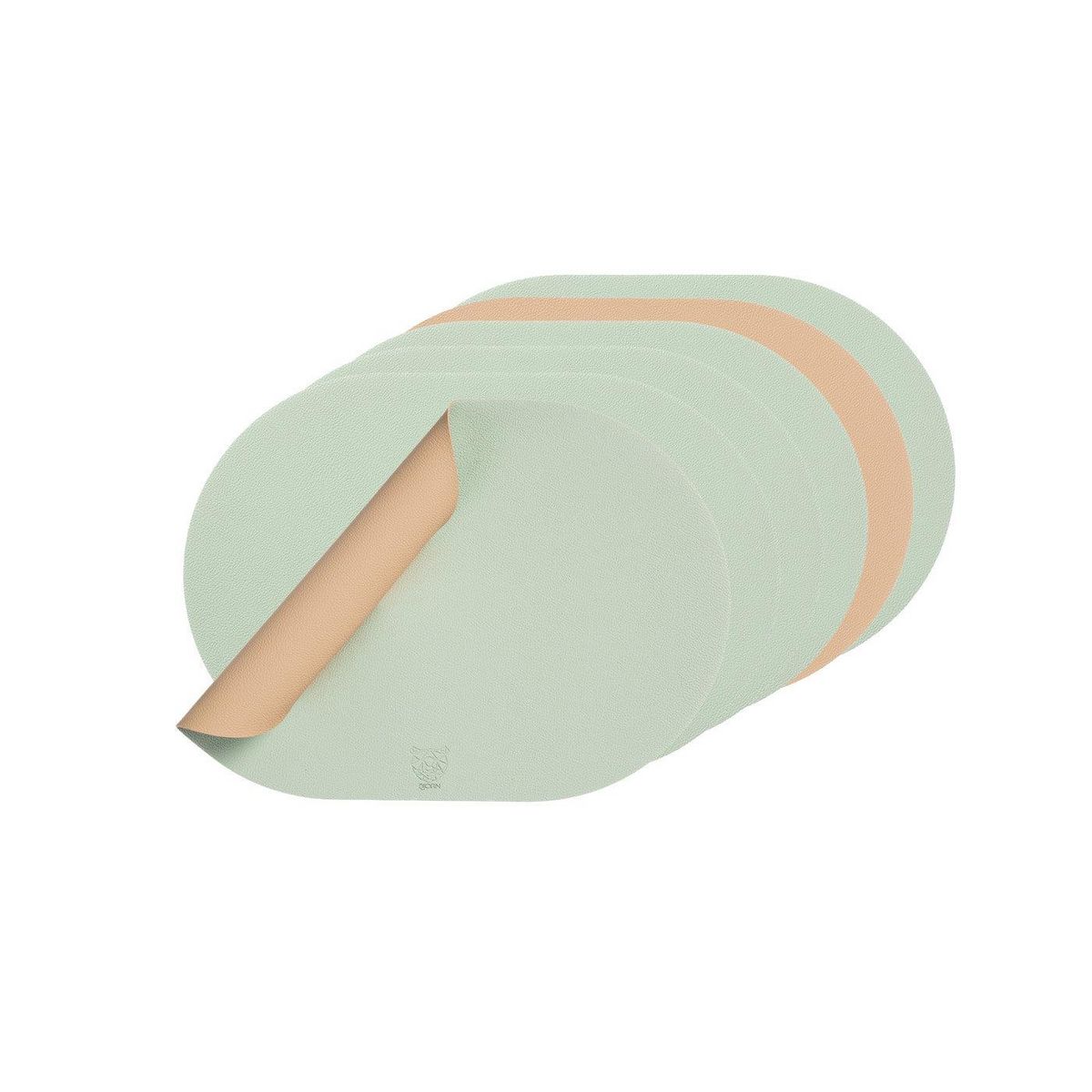 Set de table ovale réversible - 6 pièces - Cuir recyclé rose pâle et vert pâle