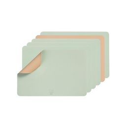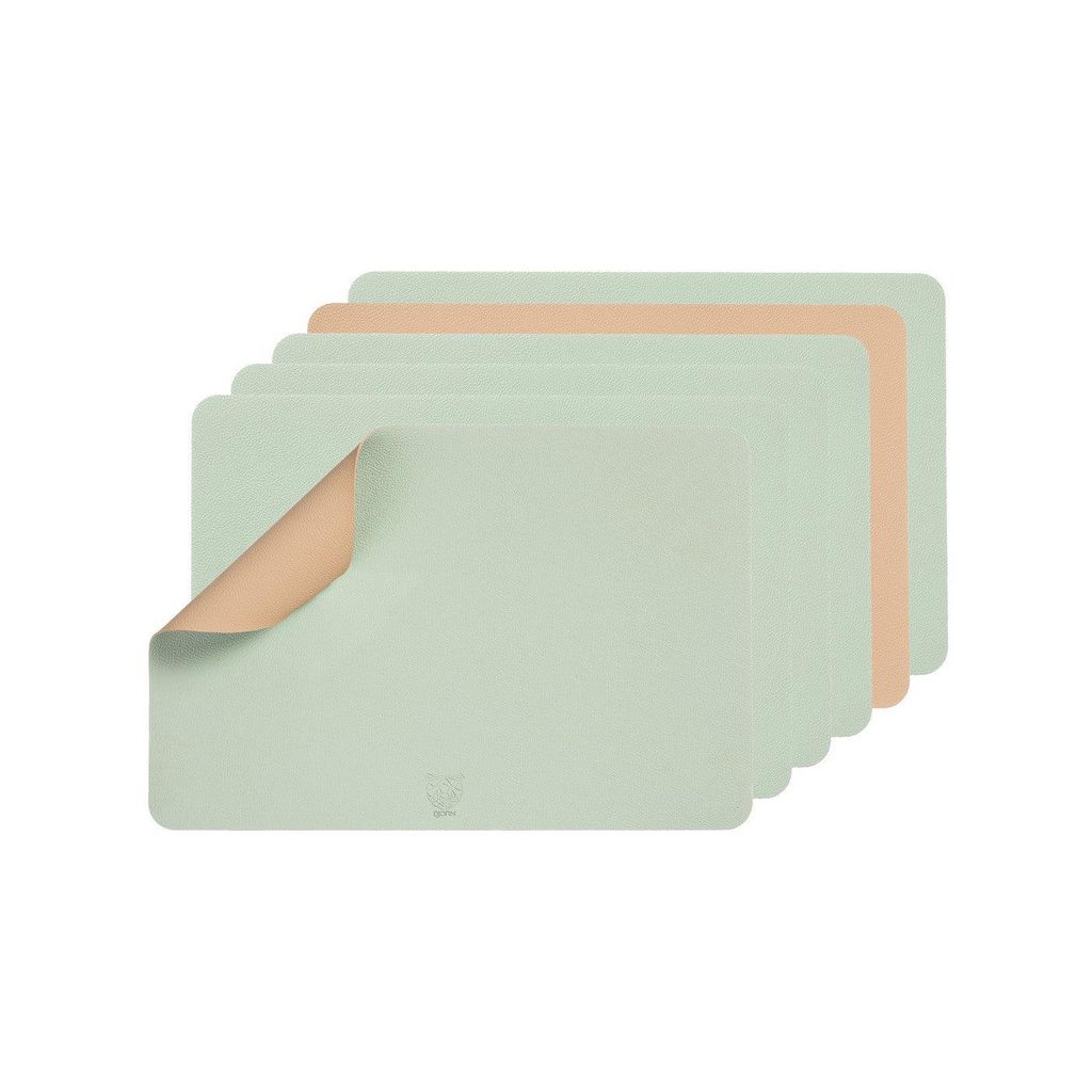 Set de table rectangulaire réversible - 6 pièces - Cuir recyclé rose pâle et vert pâle